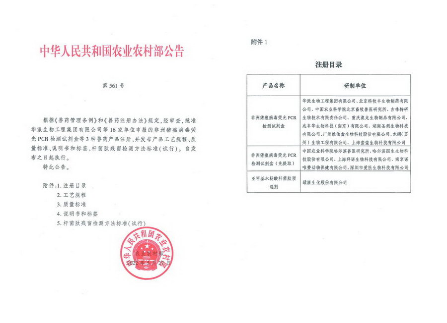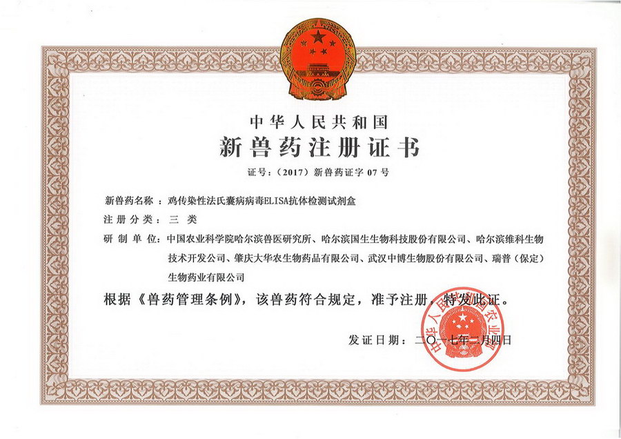 公司簡介 榮譽資質(zhì) 機構(gòu)設(shè)置 聯(lián)系我們 雞傳染性法氏囊病病毒ELISA抗體檢測試... 非洲豬瘟病毒熒光PCR檢測試劑盒(免提取... 非洲豬瘟病毒熒光PCR檢測試劑盒 火炬計劃證書 科學技術(shù)獎 三等(進步) 牛傳染性胸膜... 科學技術(shù)獎 一等(發(fā)明) 新城疫疫苗生物... < 123456 > 您可能感興趣的! 公司簡介 行業(yè)內(nèi)唯一擁有專門從事診斷制品生產(chǎn)和銷售的GMP生產(chǎn)車間的企業(yè) 銷售網(wǎng)絡(luò) 一張描繪著國生生物的擴展藍圖延伸開來 專家團隊 每一種藥物和疫苗背后,都有一支業(yè)內(nèi)頂尖的研發(fā)團隊。
